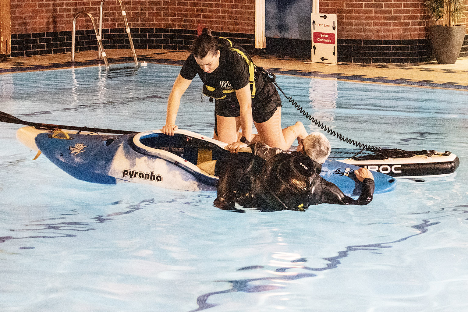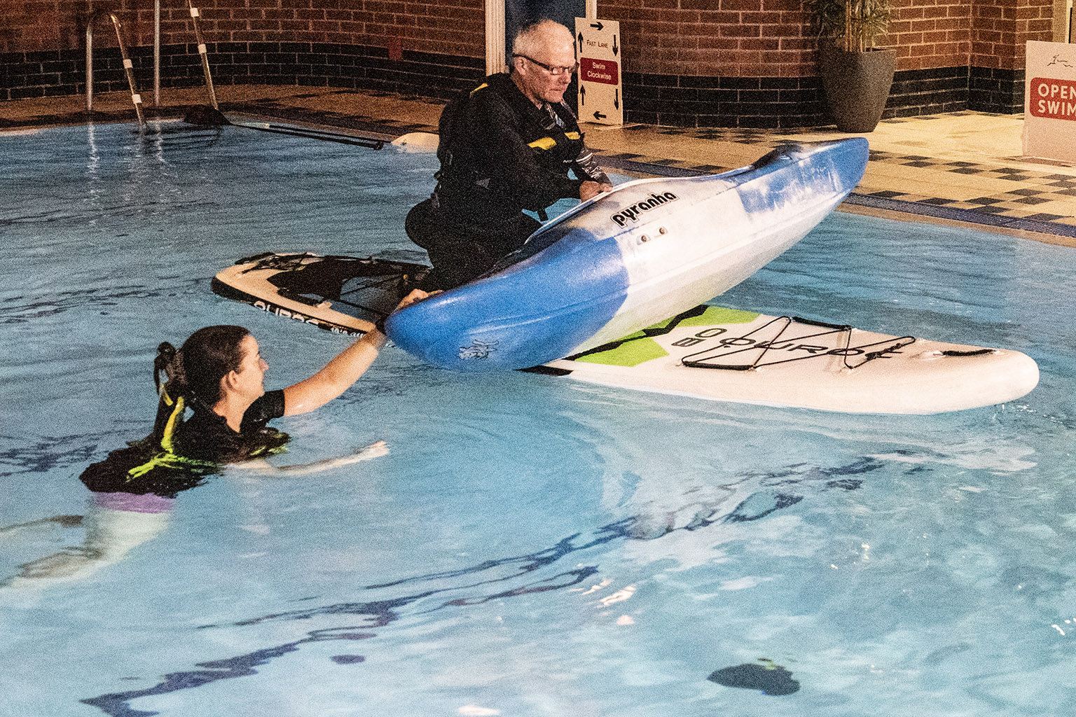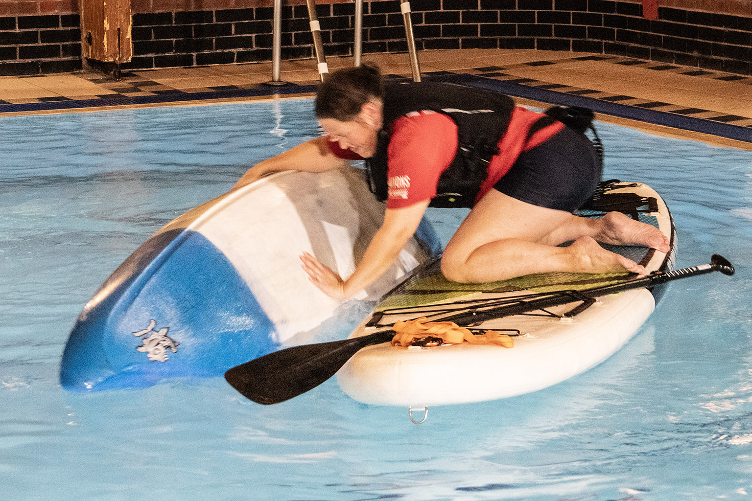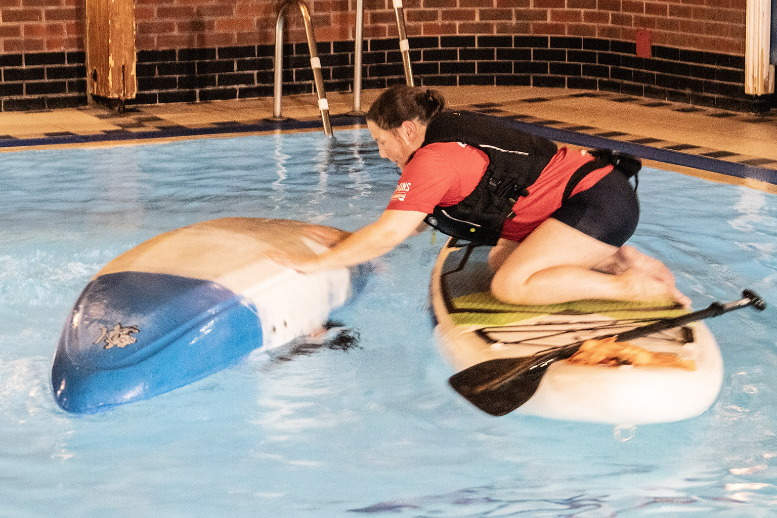 You never know when you, your friends, or strangers you meet on the waterways might require a little assistance to get themselves out of danger. Many of us had previously completed the certified PaddleUK Paddlesport Safety and Rescue course, but with the pool booked, spending 90 minutes practising the skills we’d learned seemed too good an opportunity to miss.