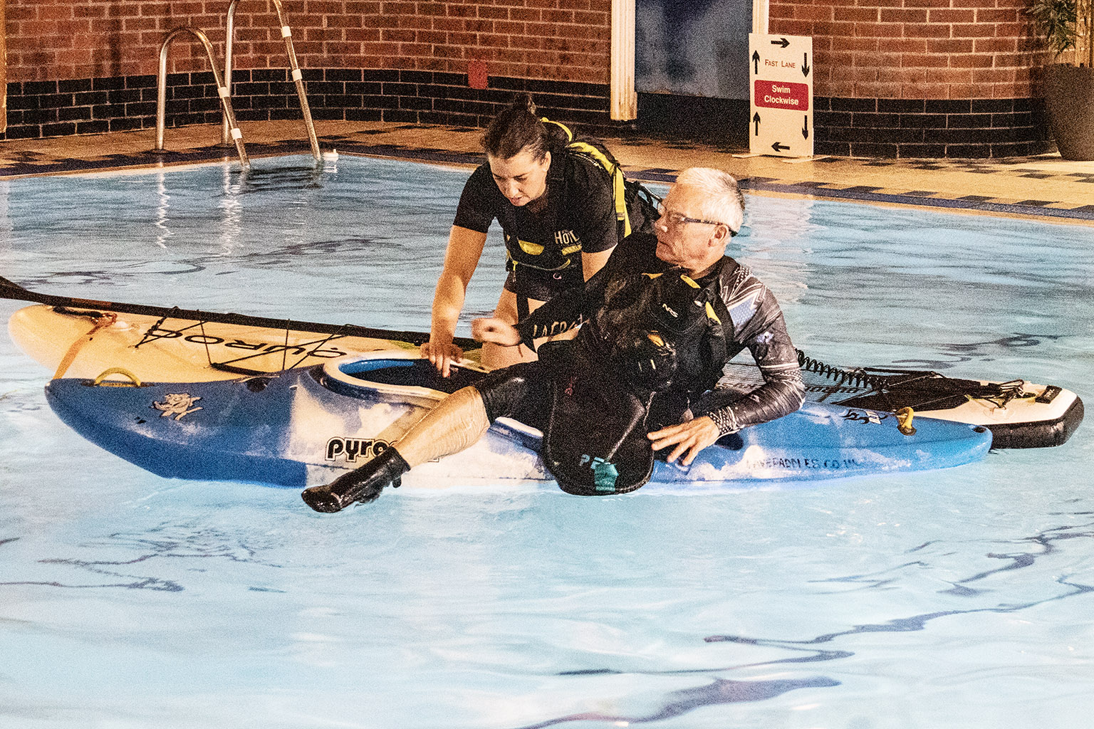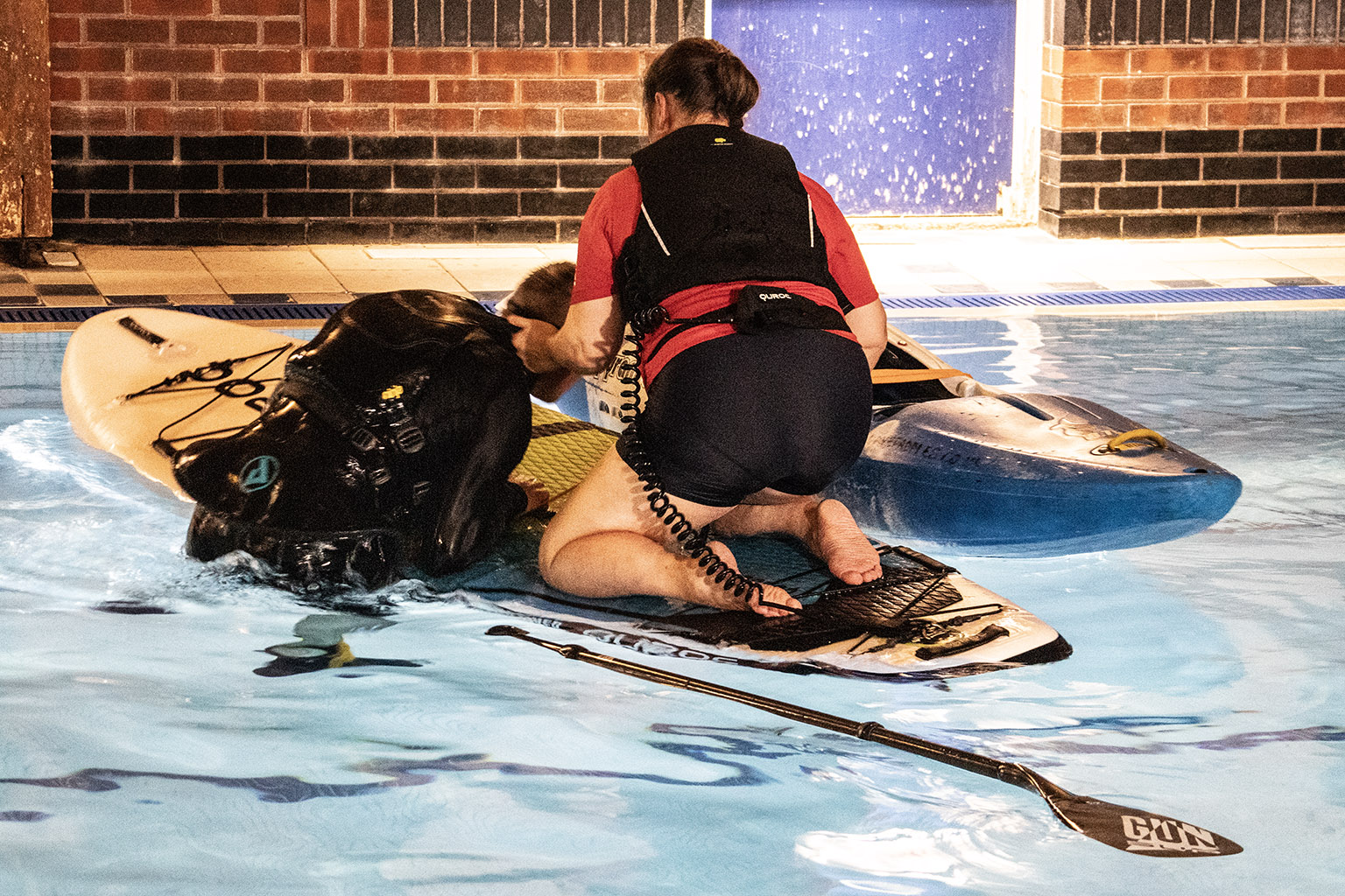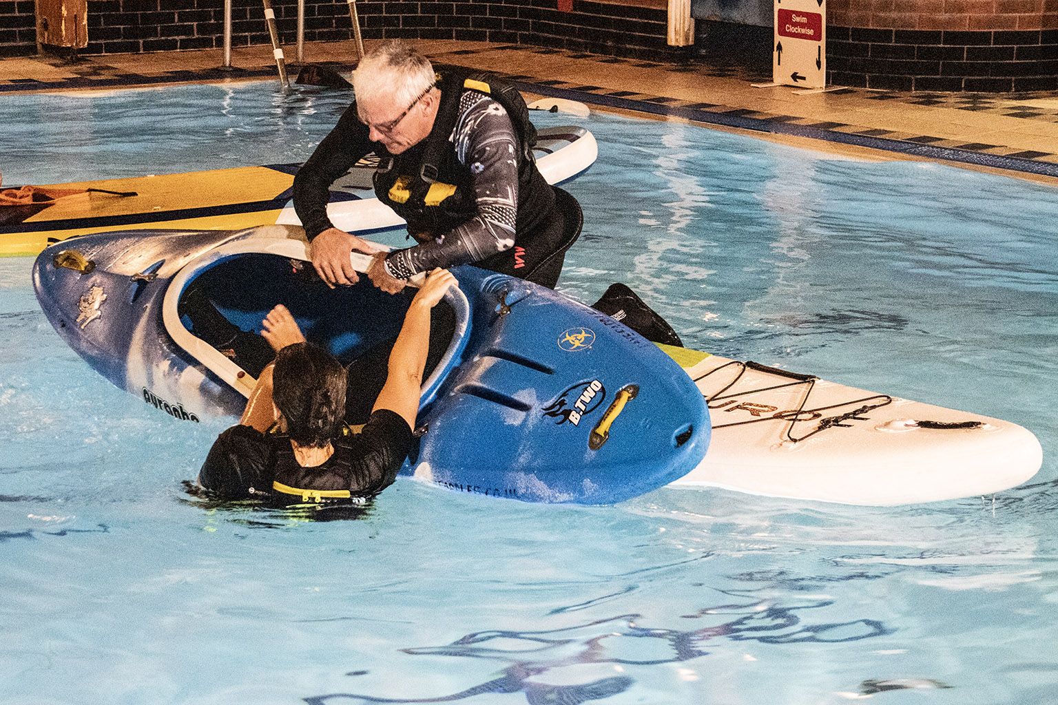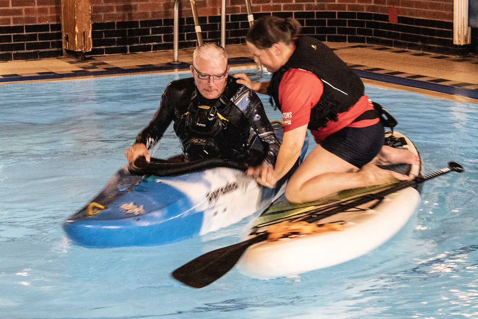 You never know when you, your friends, or strangers you meet on the waterways might require a little assistance to get themselves out of danger. Many of us had previously completed the certified PaddleUK Paddlesport Safety and Rescue course, but with the pool booked, spending 90 minutes practising the skills we’d learned seemed too good an opportunity to miss.
